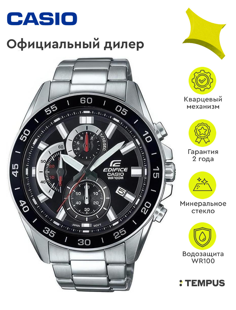 Наручные часы CASIO Edifice EFV-550D-1A кварцевые, хронограф, секундомер, водонепроницаемые, подсветка стрелок, черный