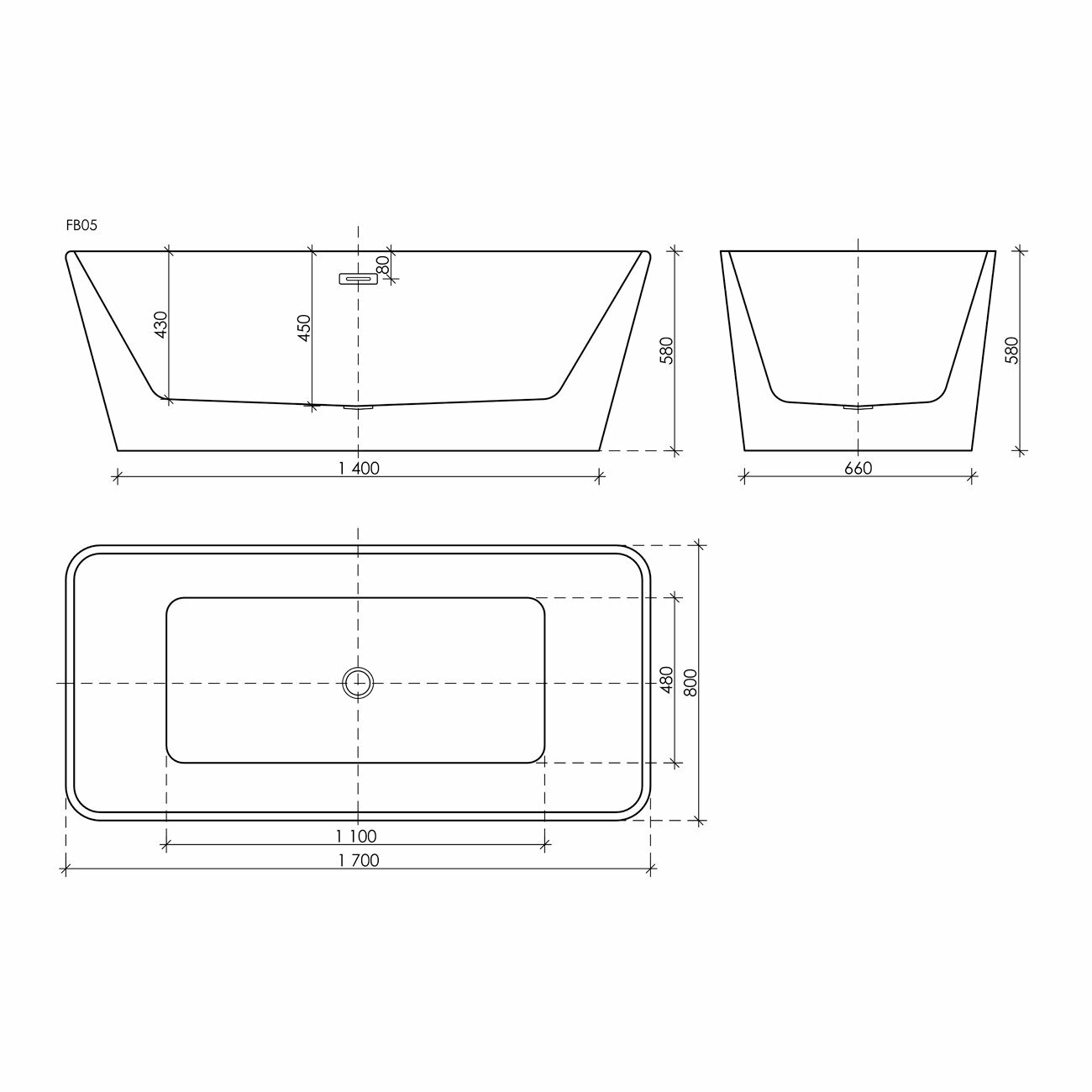 Акриловая ванна (170x80)Sancos Dama FB05
