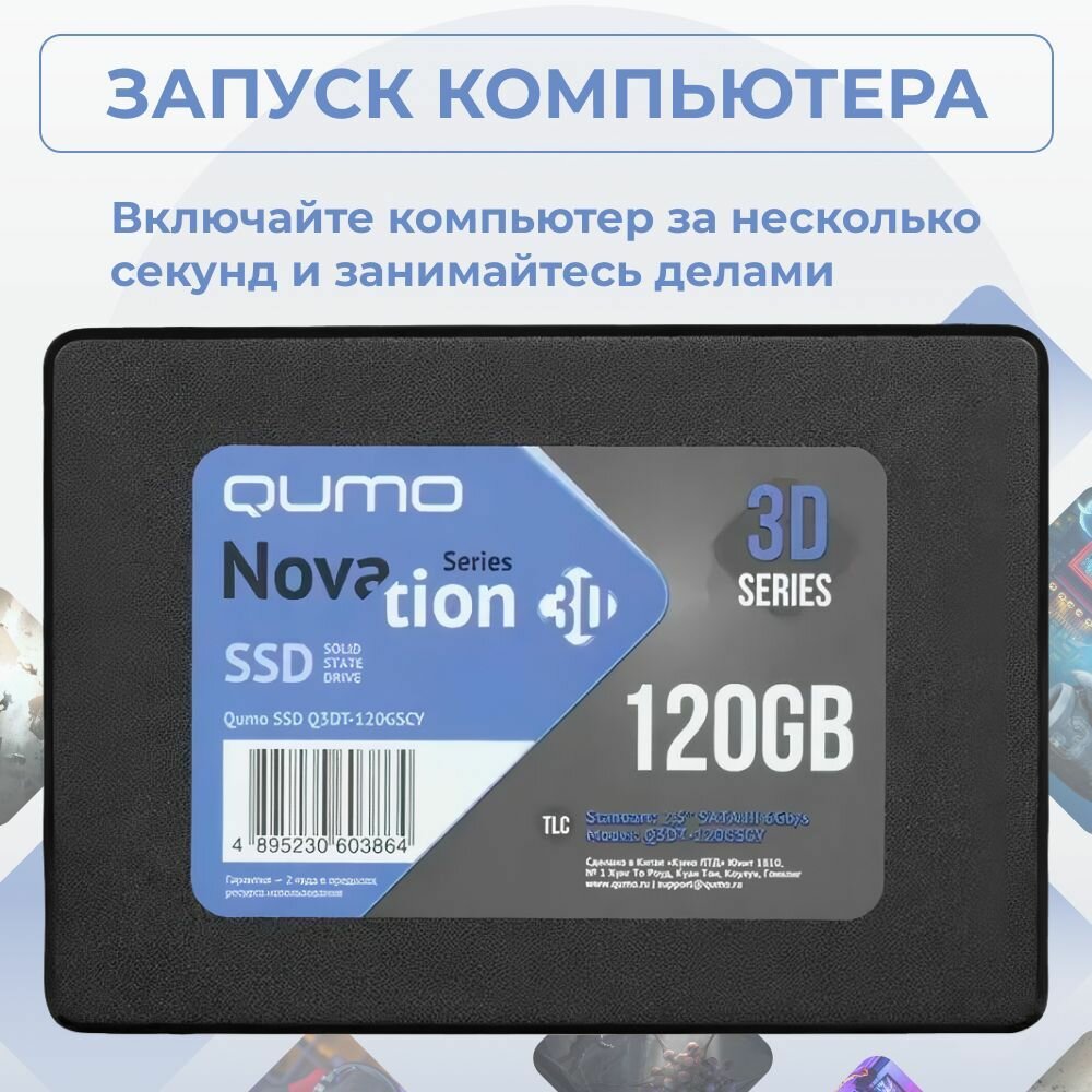 SSD диск Qumo Novation 3D TLC Q3DT-120GSCY интересное: