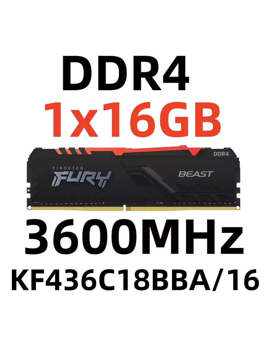 Оперативная память Kingston Fury Beast KF436C18BBA/16 DDR4 - 1x 16ГБ 3600МГц, DIMM, Ret