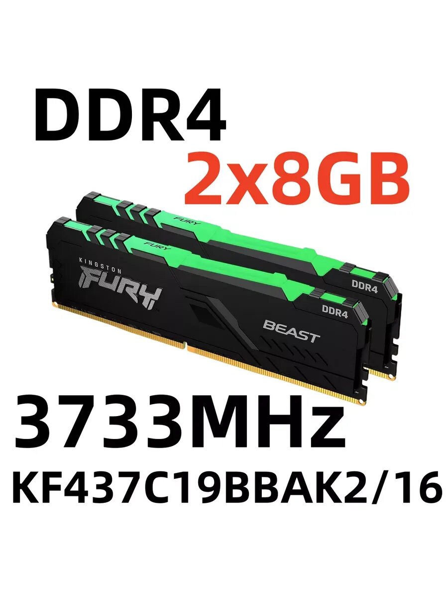 Оперативная память Kingston FURY Beast RGB 16 ГБ (8 ГБ x 2 шт.) DDR4 3733 МГц DIMM CL19 KF437C19BBAK2/16