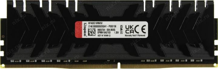 Память DIMM DDR4 32Gb (1x32Gb) PC25600 3200MHz, CL16, 1.35V Kingston FURY Renegade Black (KF432C16RB/32)