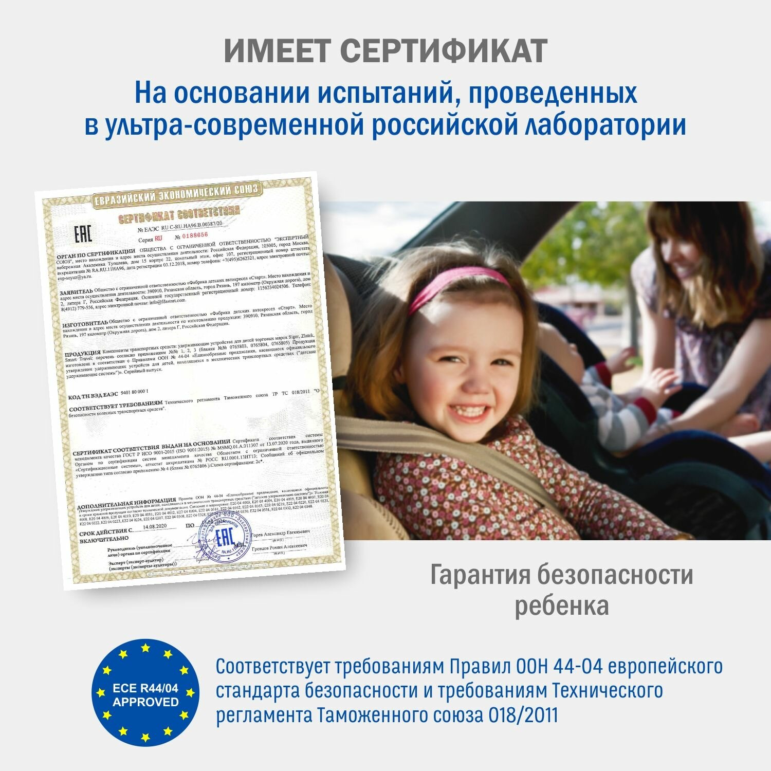 | Особенности | вес: не более 7.2 кг; замок ремней с защитой от неправильного использования; система плавного вращения кресла на базе на 360°; соответствует требованиям Правил ЕЭК ООН №44-04 и ТР ТС 018/2011 |