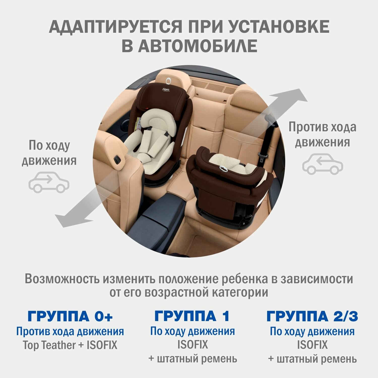 Автокресло детское поворотное с рождения до 12 лет / Isofix / 0+/1/2/3/до 36 кг 0-36кг / 0-12лет, Siger Престиж , мокко