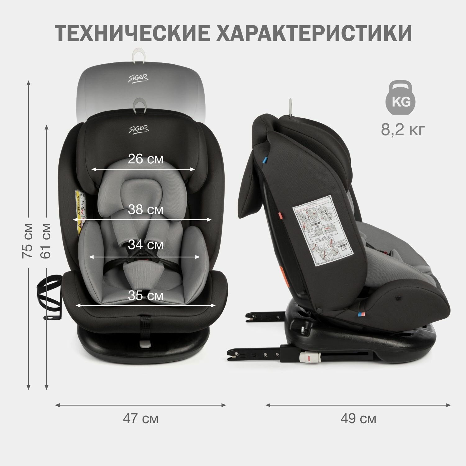 Автокресло детское поворотное Siger Престиж IsoFix от 0 до 36 кг, цвет графит