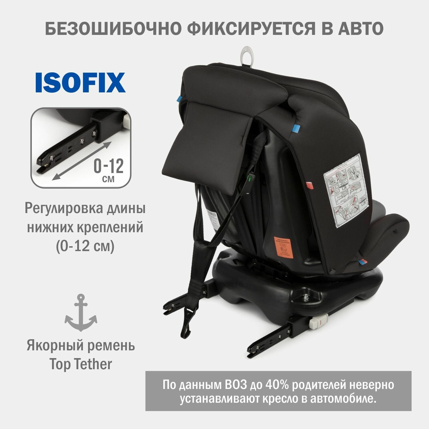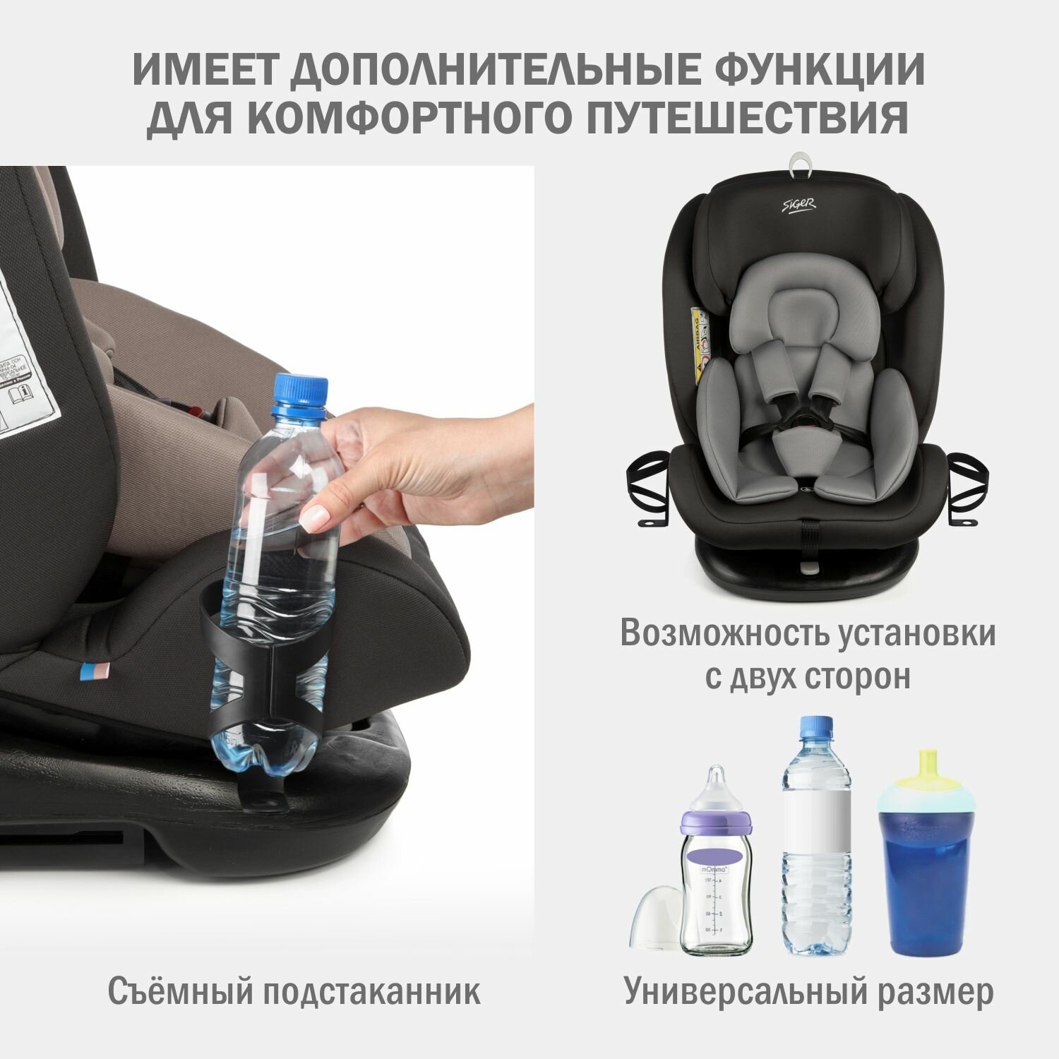 Автокресло детское поворотное с рождения до 12 лет / Isofix / 0+/1/2/3/до 36 кг 0-36кг / 0-12лет, Siger Престиж , оникс