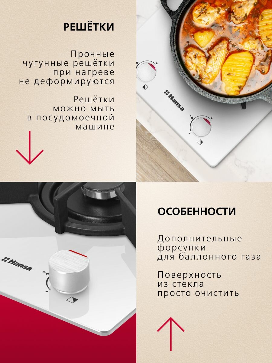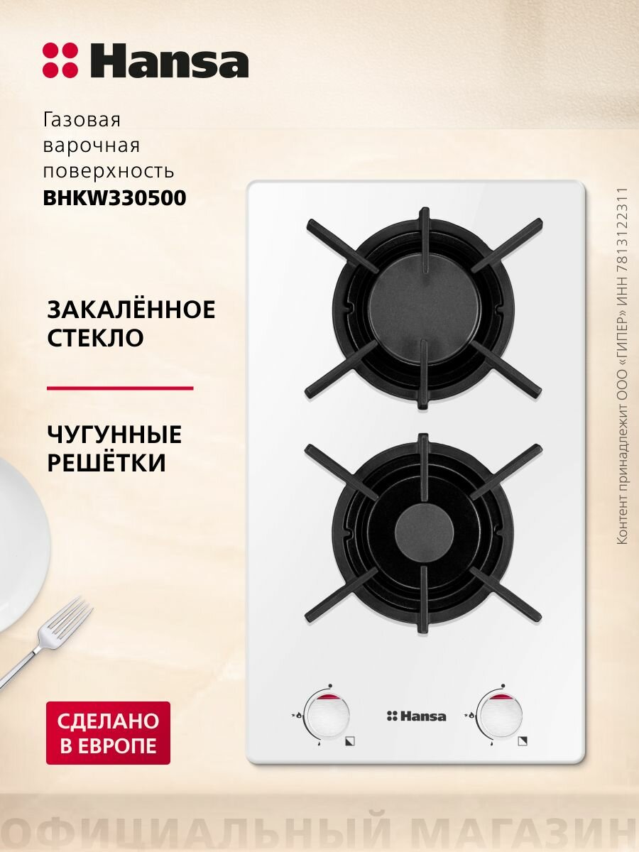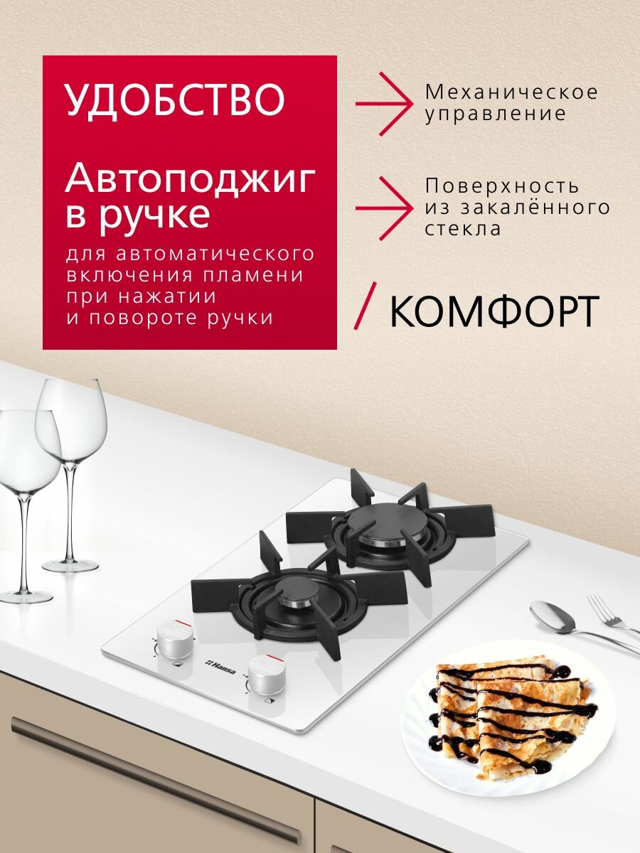 Газовая варочная панель Hansa BHKW330500, двухконфорочная, стеклянная поверхность, с газ-контролем и автоподжигом, белая интересное: