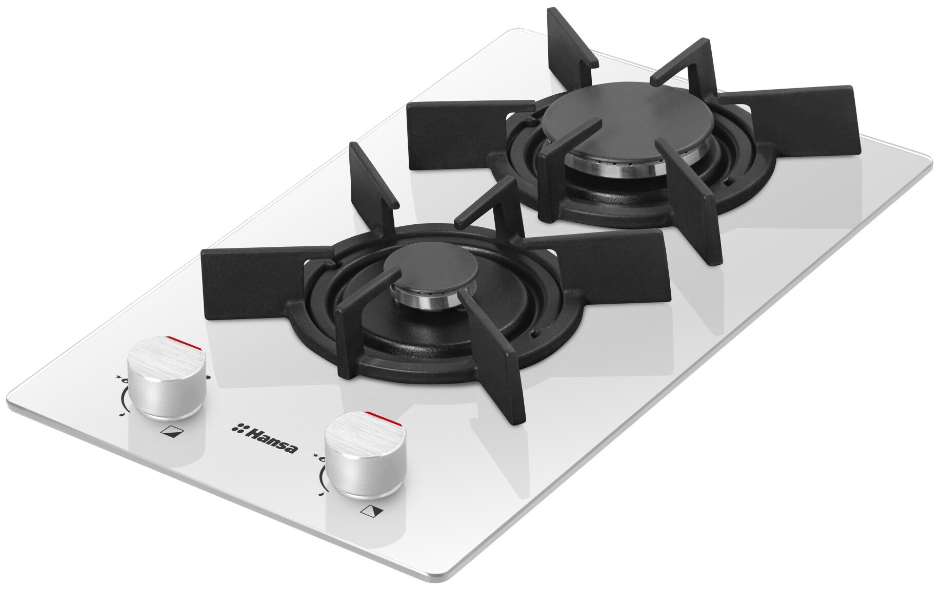 Купить Газовая варочная панель Hansa BHKW330500, двухконфорочная, стеклянная поверхность, с газ-контролем и автоподжигом, белая