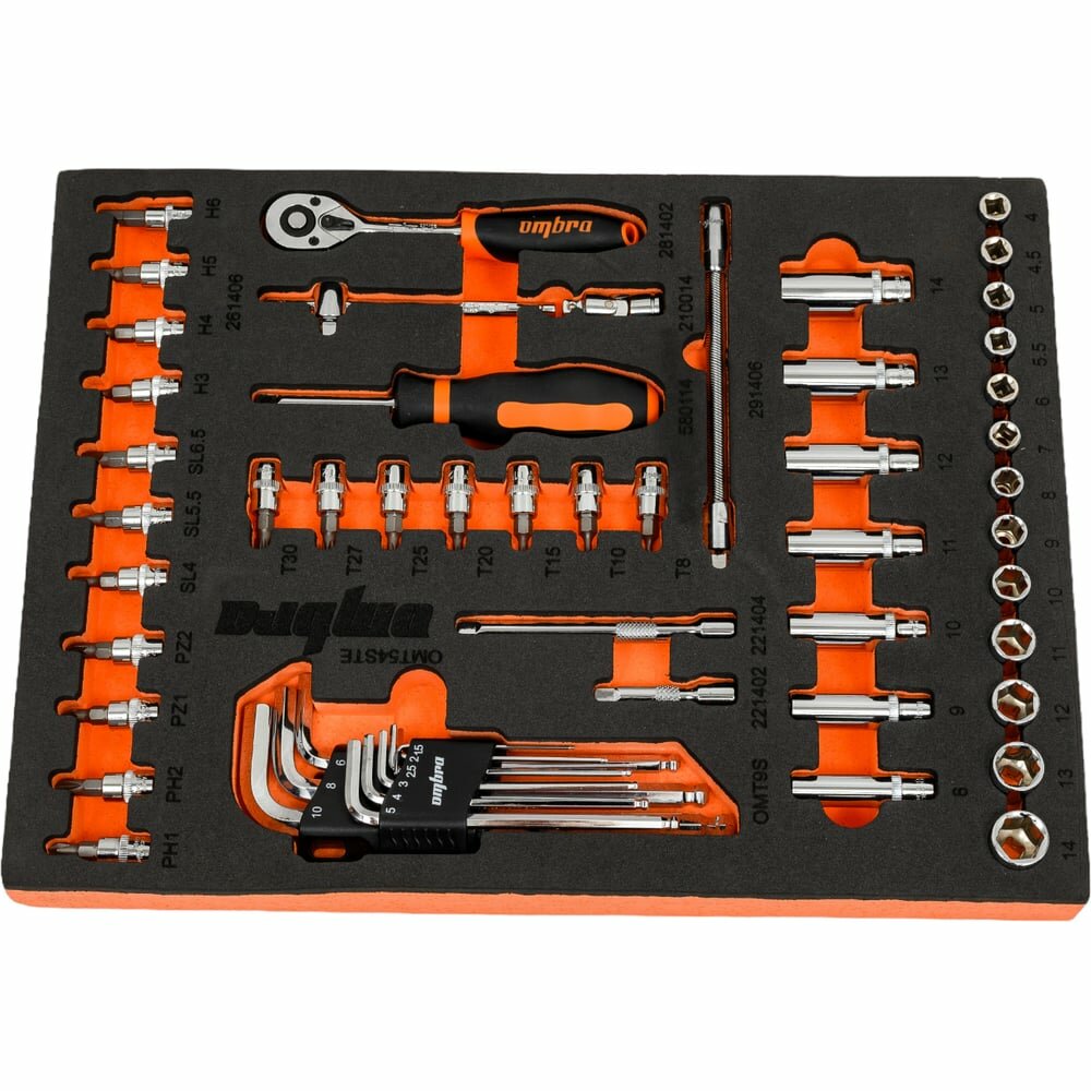Ombra OMT54STE Набор головок торцевых 1/4 DR с аксессуарами в EVA ложементе 280х375 мм, 54 пр. 56136