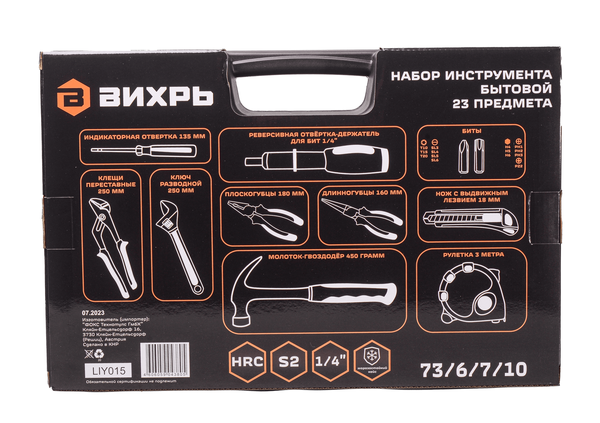 Ниже Вы можете прочитать отзывы на Набор инструмента бытовой, в кейсе 23 предмета Вихрь, ознакомится с подробными характеристиками, посмотреть интересные обзоры и фотографии на Набор инструмента бытовой, в кейсе 23 предмета Вихрь.