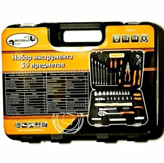 Купить Набор инструментов "АвтоDело" 39859 (1/2", 1/4", 59 предметов, кейс)