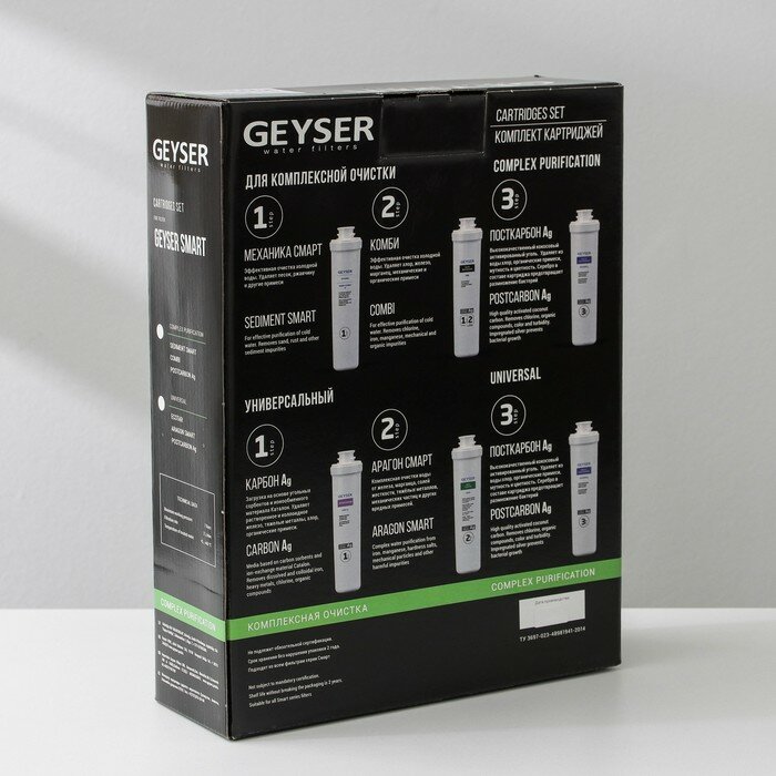 | Дополнительная информация | предназначен для фильтра Гейзер Смарт (для очистки жесткой воды); комплектация: Карбон Ag, Арагон Смарт, Посткарбон Ag |