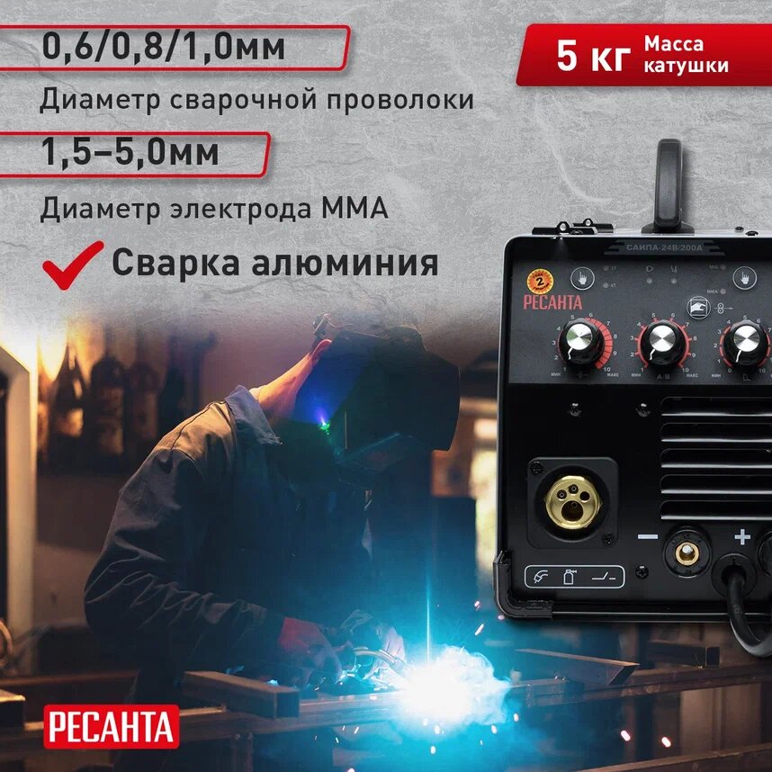 Купить Сварочный полуавтомат САИПА-24В/200А Ресанта, MMA, MIG/MAG, 15-200А
