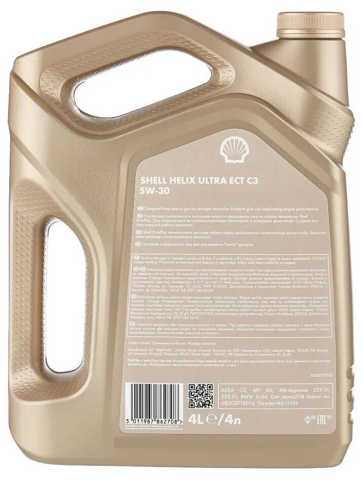 Моторное масло SHELL Helix ECT C3, 5W30, 4 литра интересное: