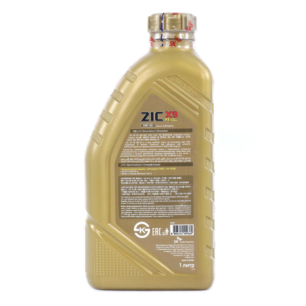ZIC X9 FE 0W30 (1L)_масло моторное! синт.\ API SP, ILSAC GF-6 ZIC / арт. 132683 - (1 шт)