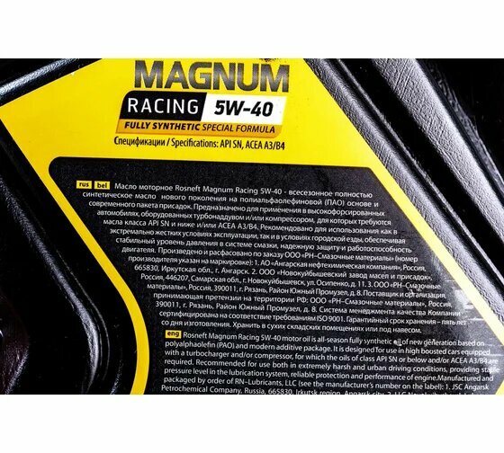 Синтетическое моторное масло Роснефть Magnum Racing 5W-40, 5 л, 4.6 кг, 1 шт