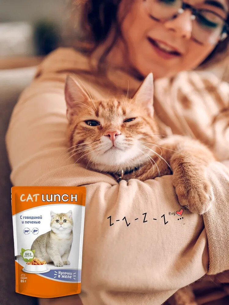 Купить Cat Lunch пауч для кошек кусочки в желе Говядина и Печень 85г