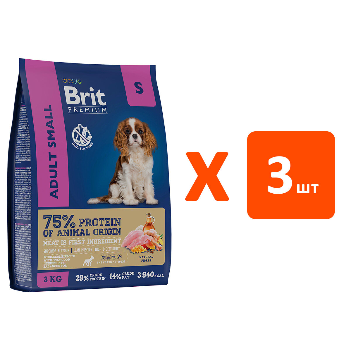 Купить BRIT PREMIUM DOG ADULT SMALL для взрослых собак маленьких пород с курицей (3 кг х 3 шт)