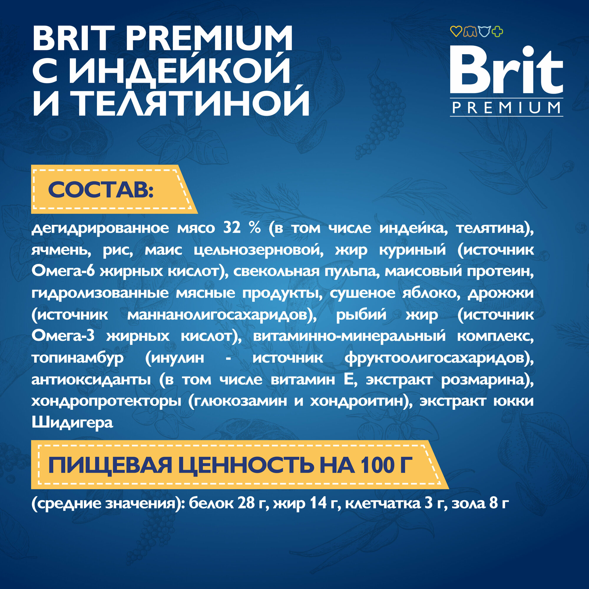 Brit Premium Dog Adult Medium сухой корм для взрослых собак средних пород (10-25 кг), с индейкой и телятиной - 8 кг