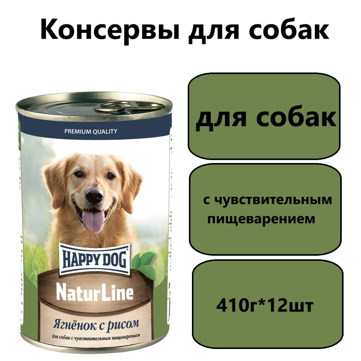 Консервы для собак Happy Dog NatureLine (Ягненок с рисом), 410 гр. По 12 шт.