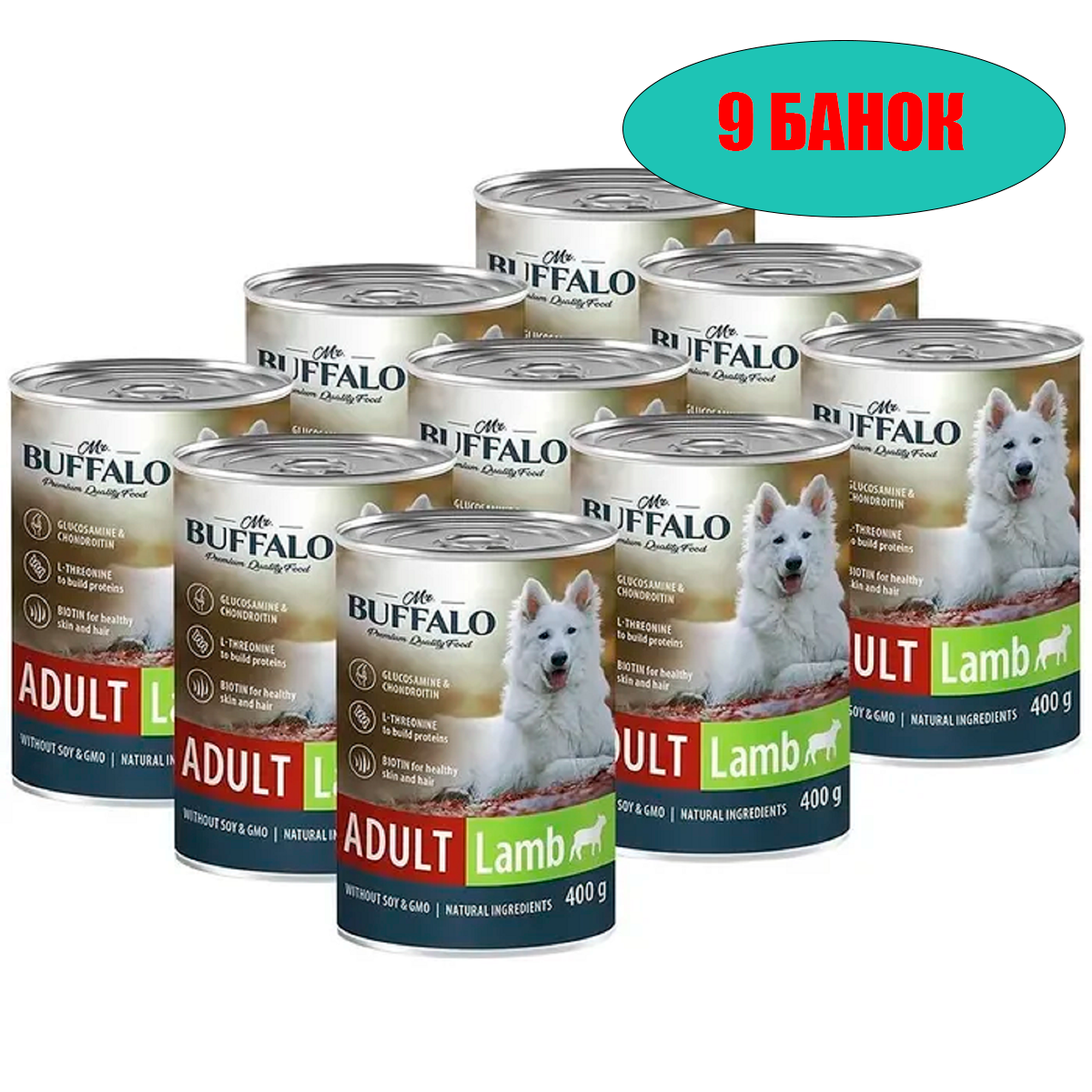 Консервы Мистер Бафало для взрослых собак Ягненок (цена за упаковку) 400г х 9шт