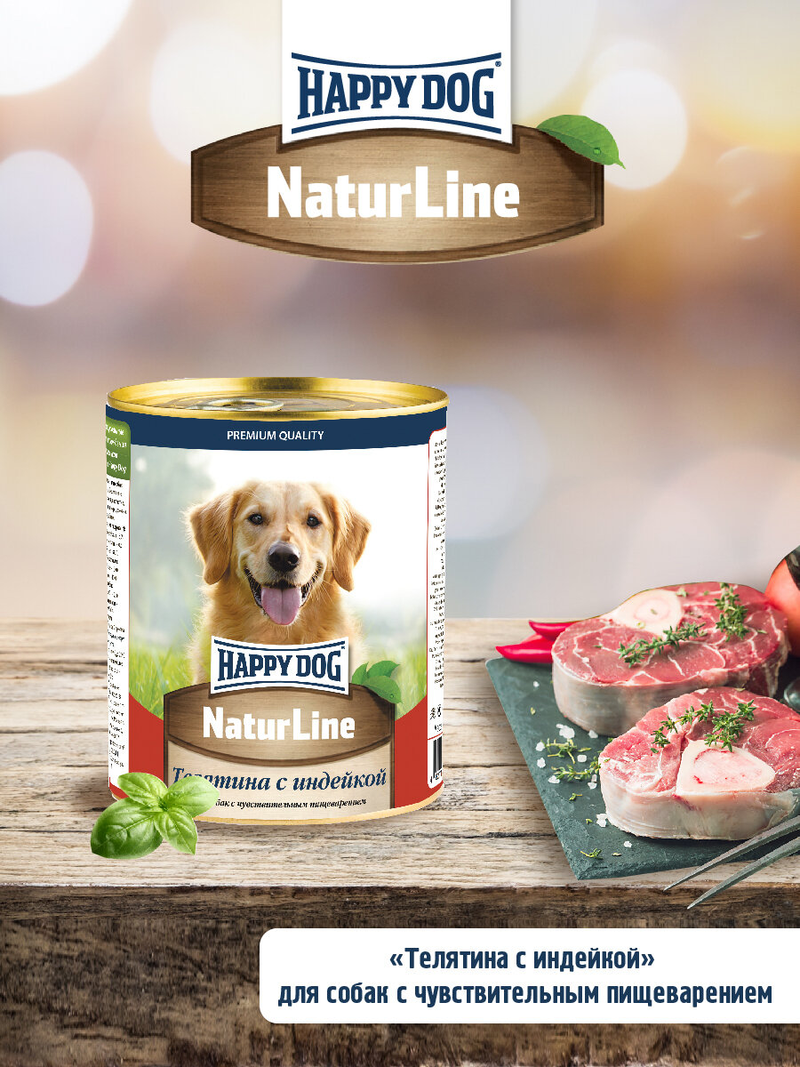 Консервы для собак Happy Dog NatureLine (Телятина с индейкой), 970 гр. по 12 шт.