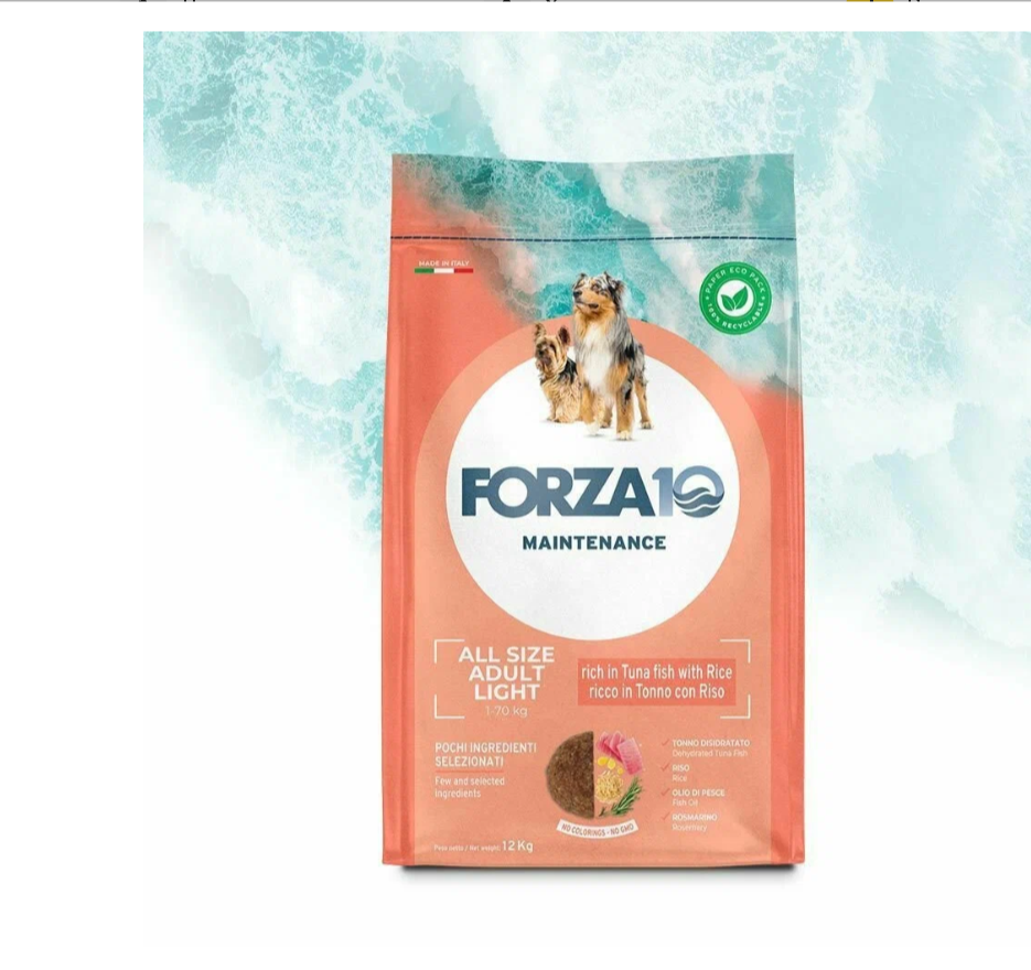 FORZA10 DOG MAINTENANCE LIGHT ALL BREEDS диетический для взр соб всех пород с тунцом и рисом 1170012 12 + 12 кг