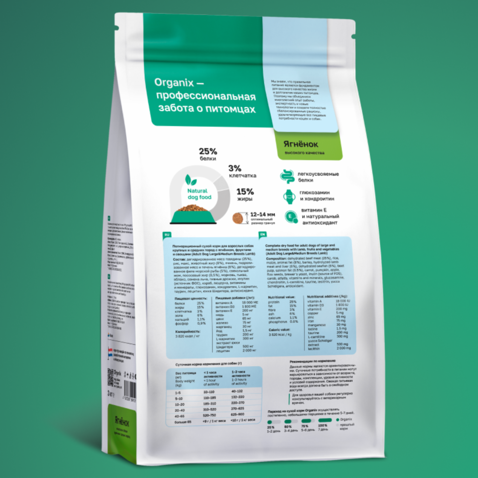 ORGANIX BREEDER LINE ADULT DOG LAMB для взрослых собак всех пород с ягненком (20 кг)