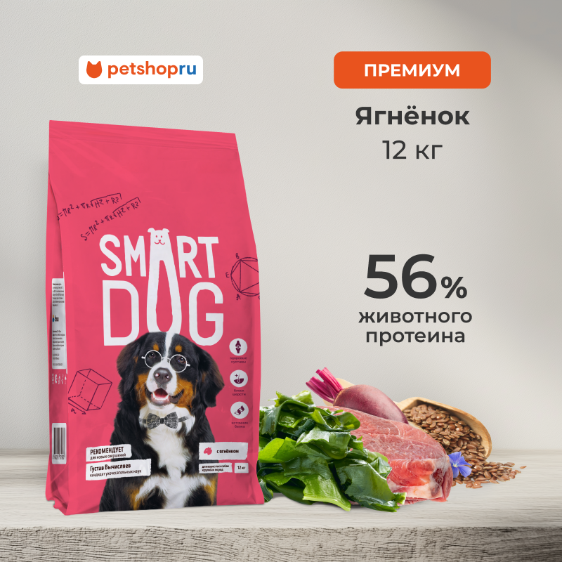 Сухой корм для собак Smart Dog ягненок 1 уп. х 1 шт. х 12 кг (для крупных пород)