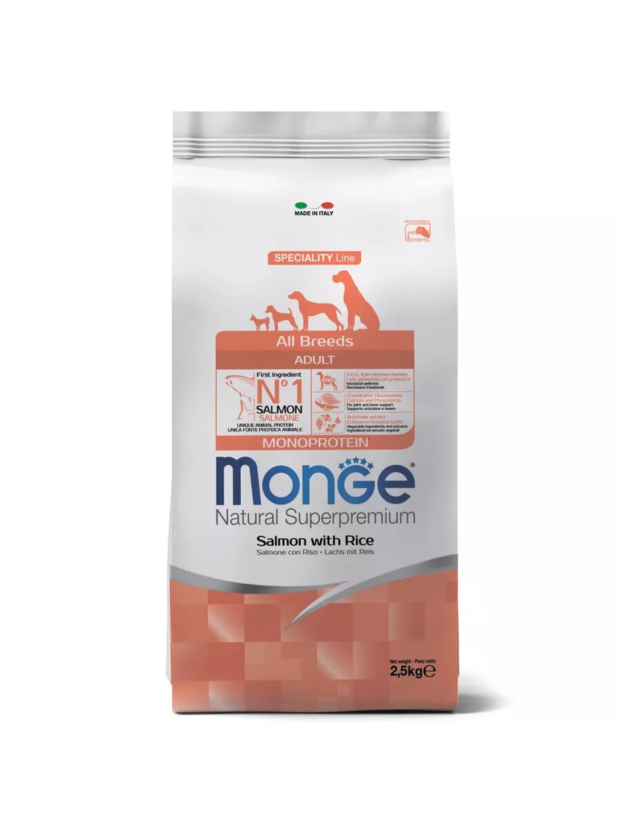 Monge (Монж) 2,5кг Mini Adult Salmone для взрослых собак мелких пород с лососем и рисом