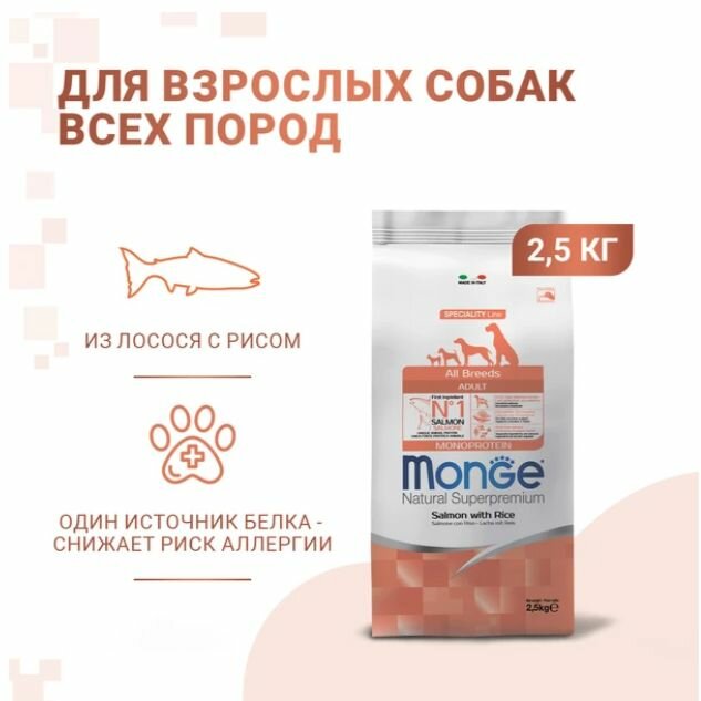 Сухой корм для собак Monge, беззерновой, Лосось 2,5 кг