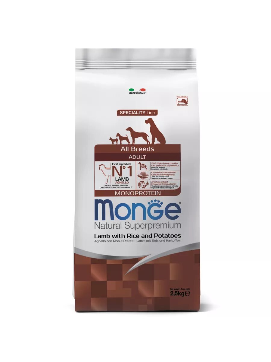 Купить Сухой корм для собак Monge из ягненка с рисом и картофелем 2,5 кг