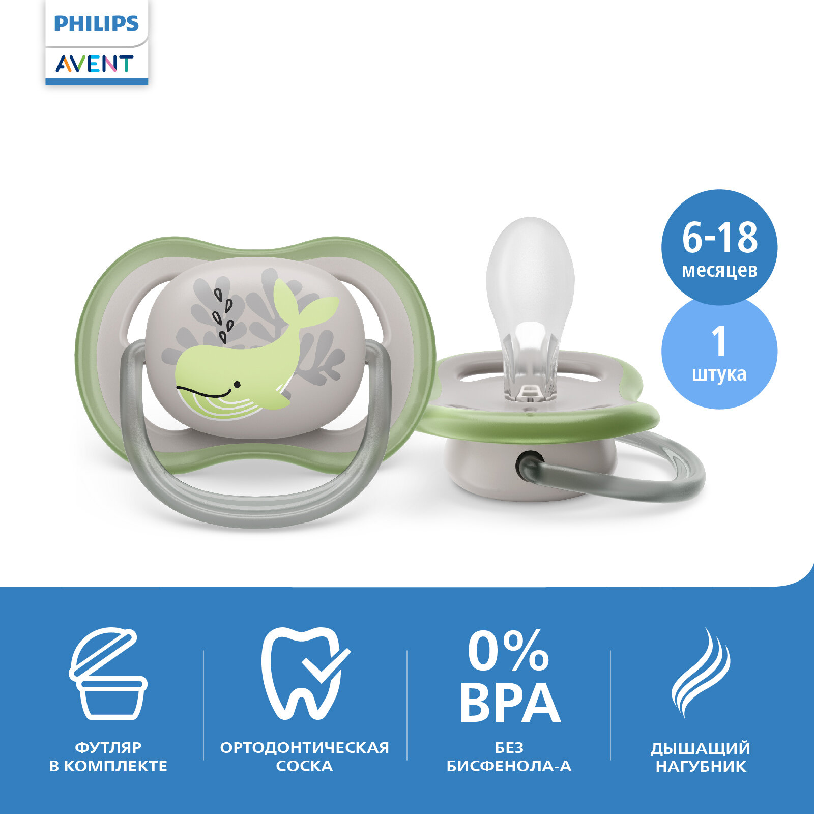 Купить Соска - пустышка силиконовая Philips Avent ultra air SCF086/05 с футляром для хранения и стерилизации, 6-18 мес, 1 шт.