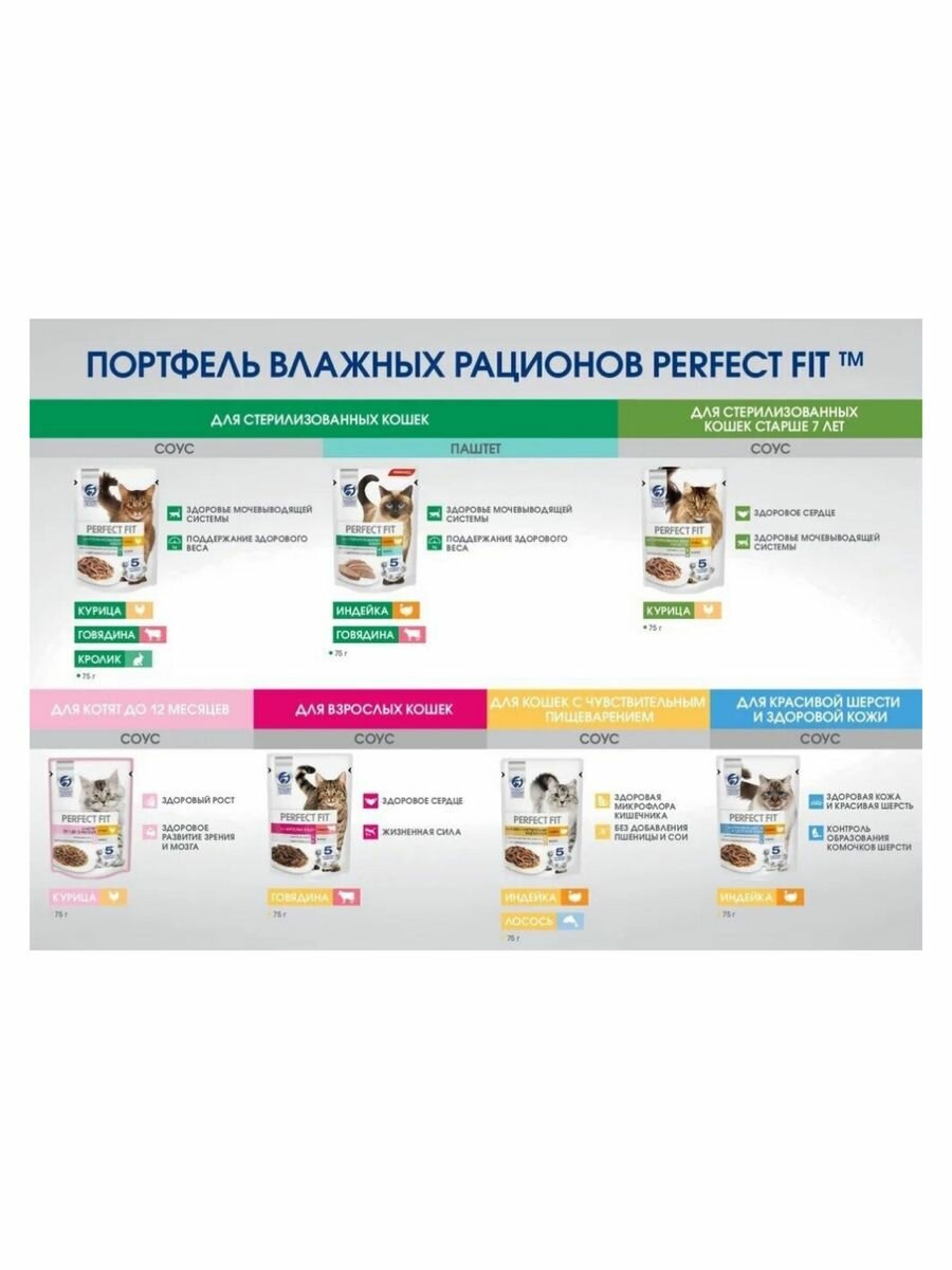 12 ШТ Perfect Fit Влажный корм для стерилизованных кошек, паштет с индейкой, 75 г