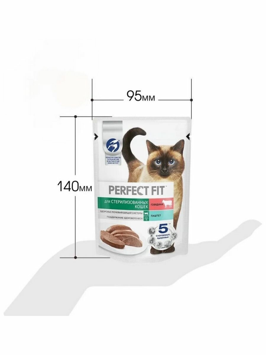 PERFECT FIT для взрослых кастрированных котов и стерилизованных кошек паштет с говядиной пауч 75 гр 75 гр х 6 шт