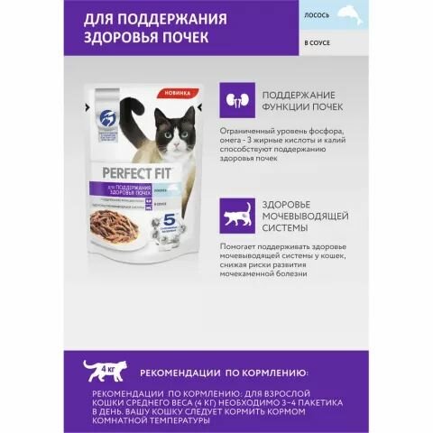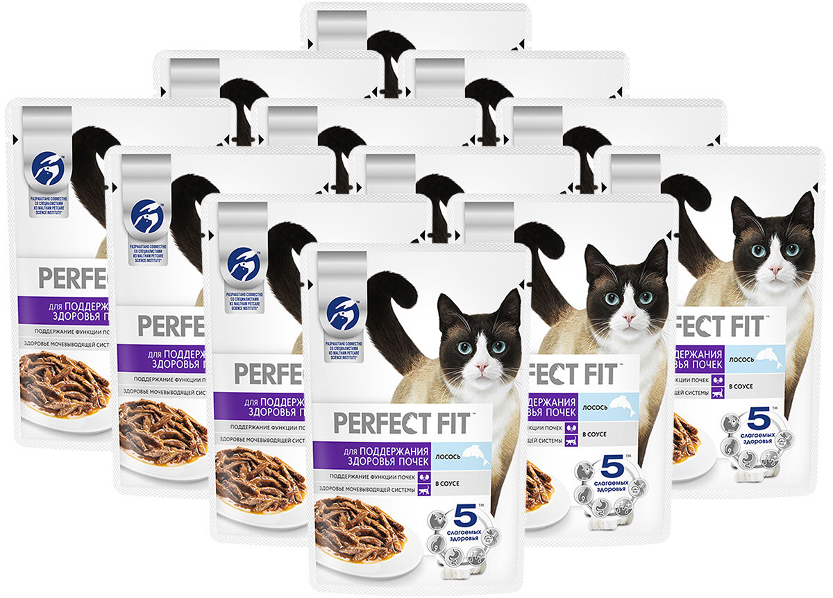 Купить PERFECT FIT для взрослых кошек для поддержания здоровья почек с лососем в соусе пауч 75 гр NEW 75 гр х 12 шт
