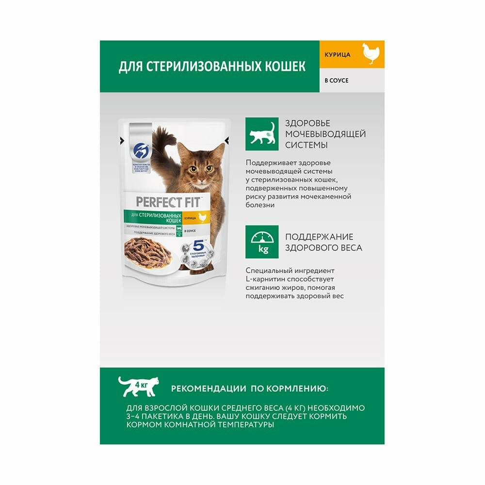 Влажный корм для стерилизованных кошек PERFECT FIT курица в соусе, 75 г, 28 шт