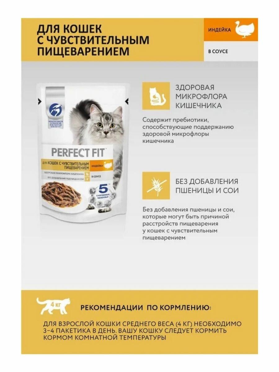 Купить Корм влажный Перфект фит для кошек с Чувствительным пищеварением Индейка в соусе 10 шт