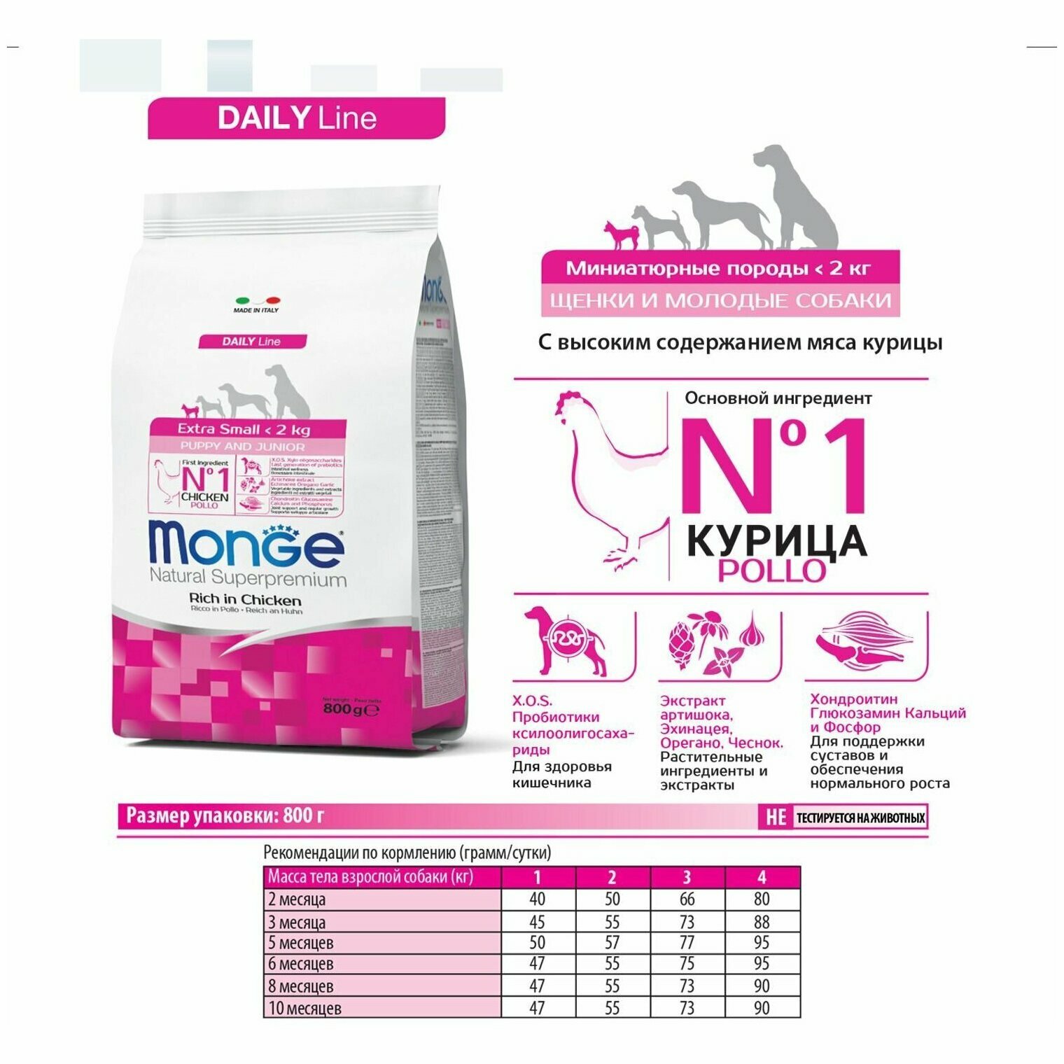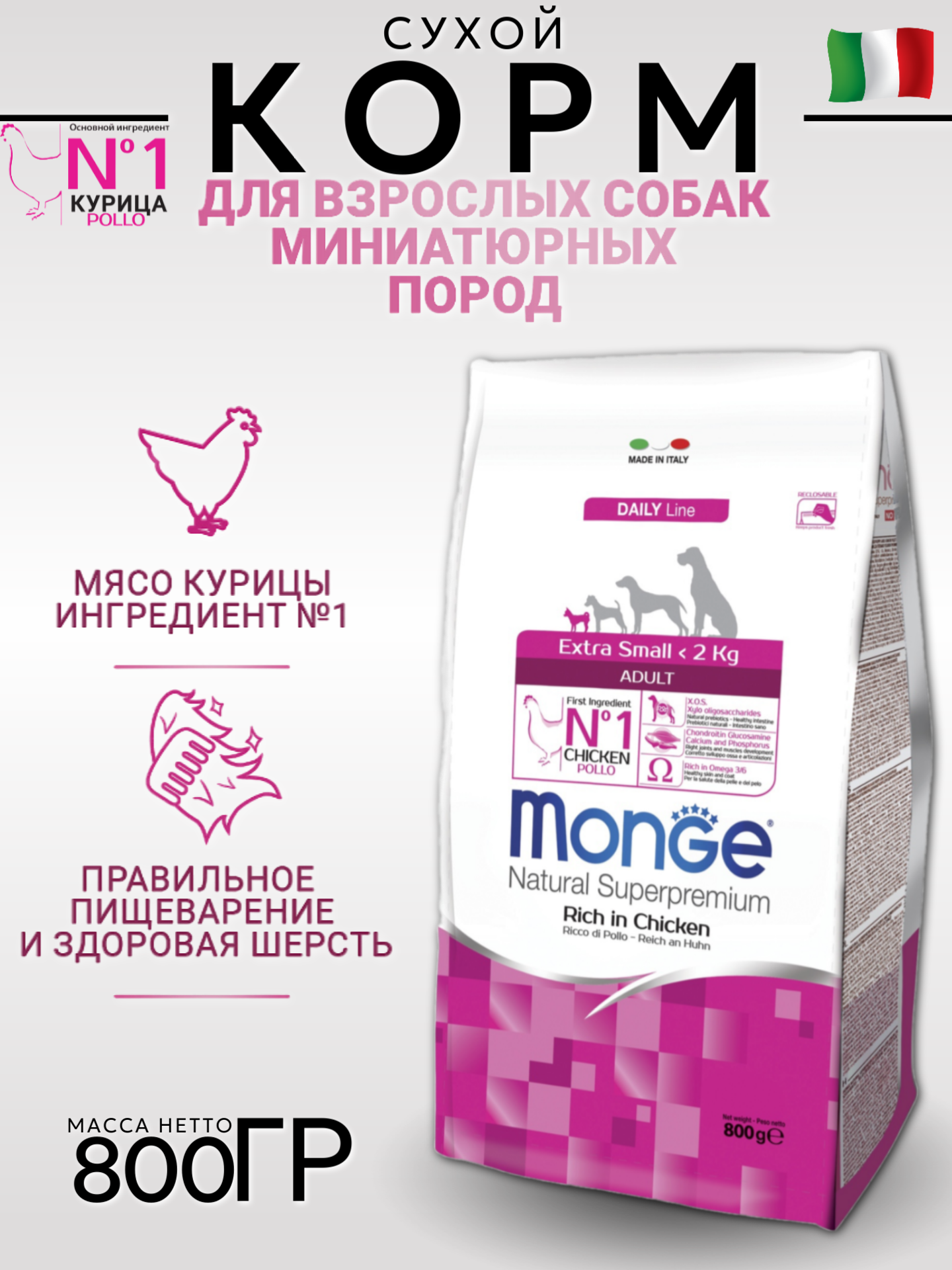 Сухой корм Monge Dog Daily Line Extra Small для взрослых собак миниатюрных пород, из курицы 800 г