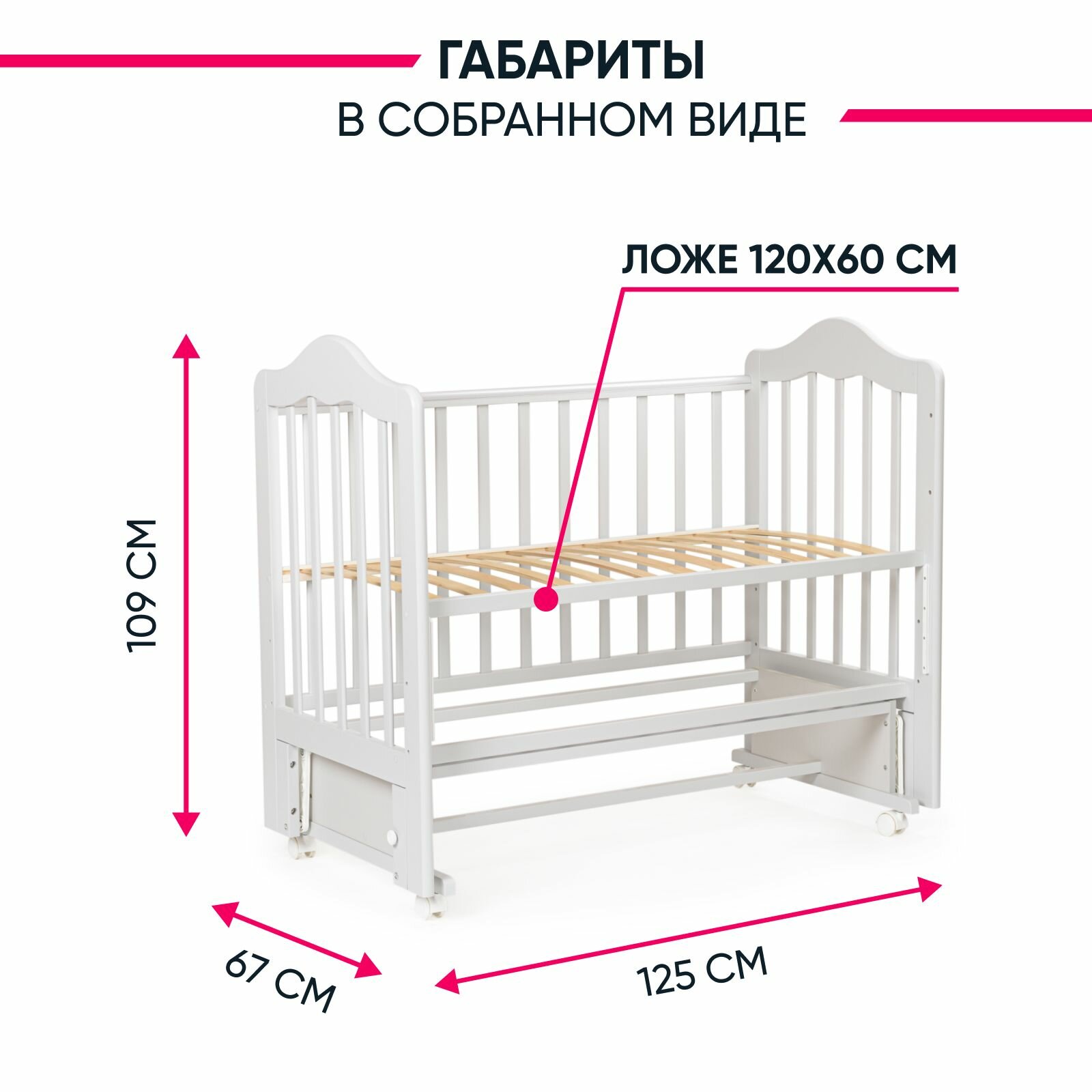 Кроватка для новорожденных BEBIZARO FILLMORE WHITE Универсальный маятник (ШхГхВ) 125х67х109 см