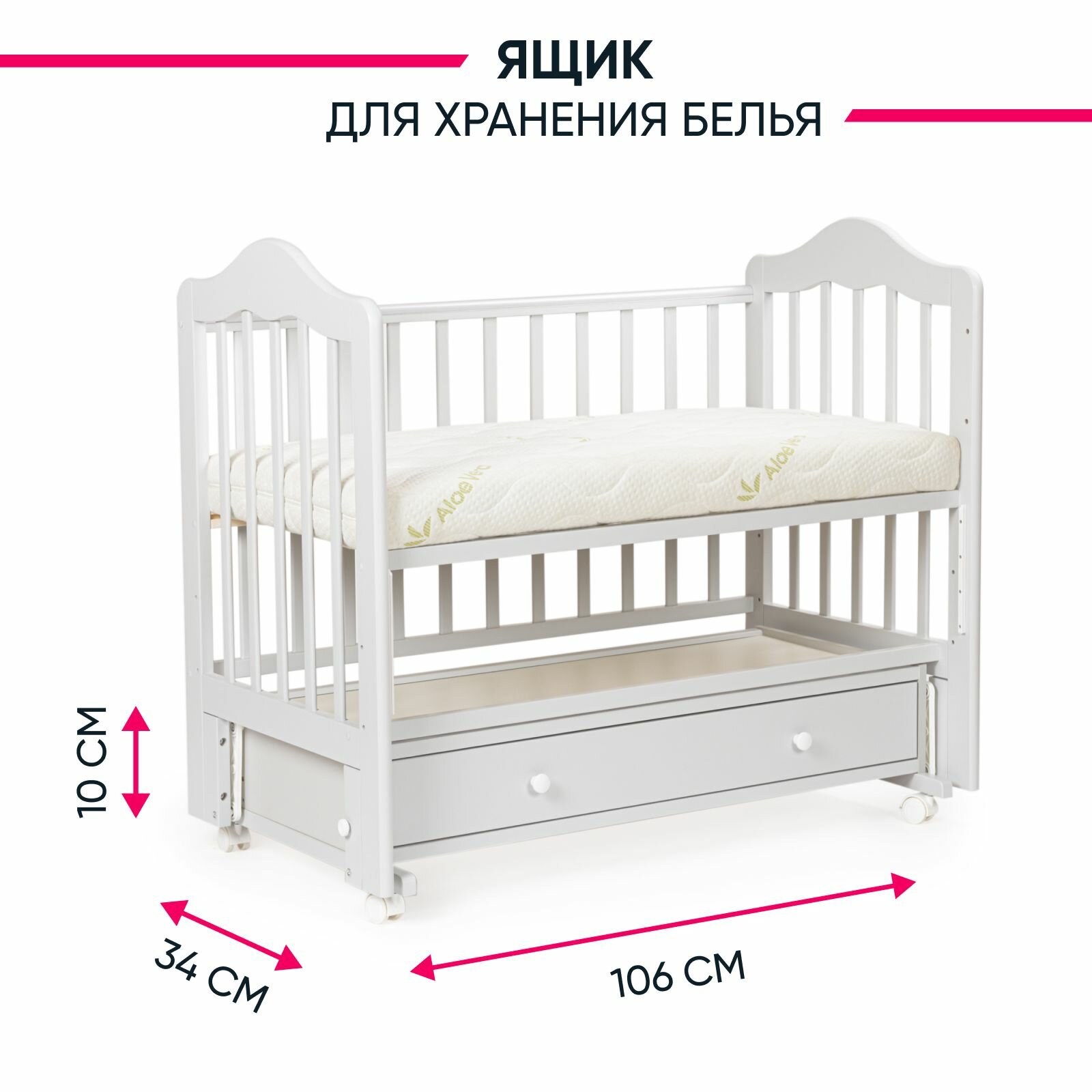 Кроватка для новорожденных BEBIZARO FILLMORE WHITE Универсальный маятник с ящиком (ШхГхВ) 109х125х67 см