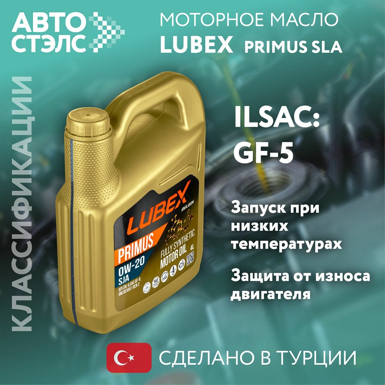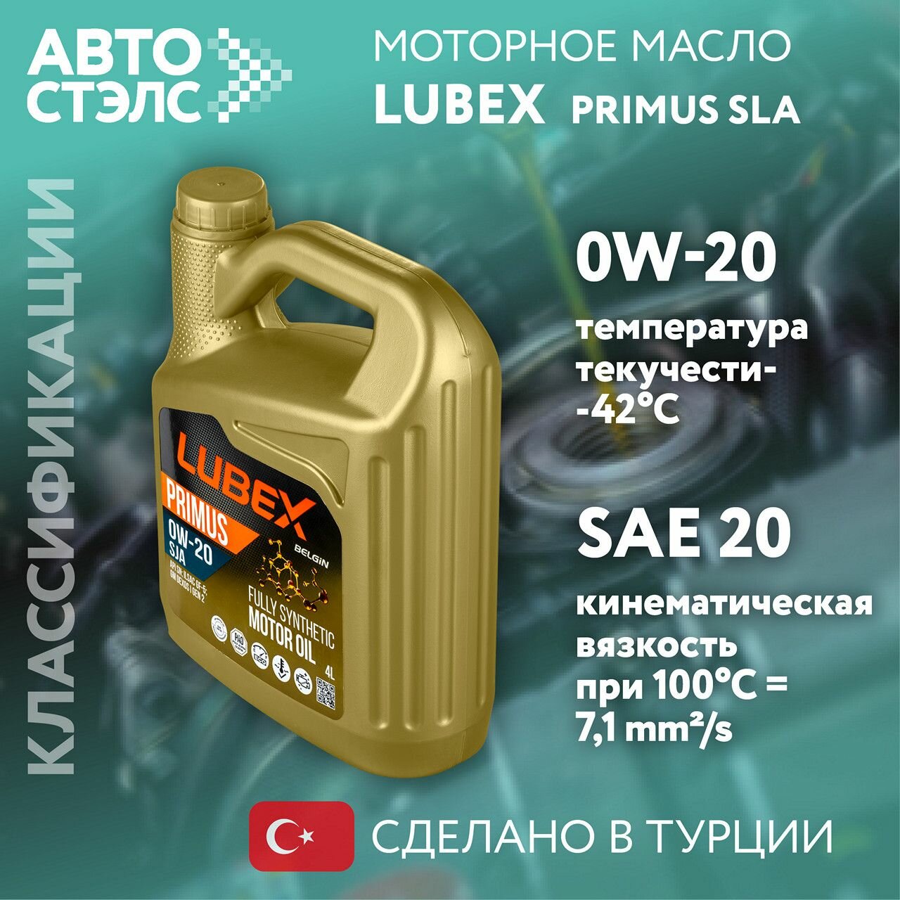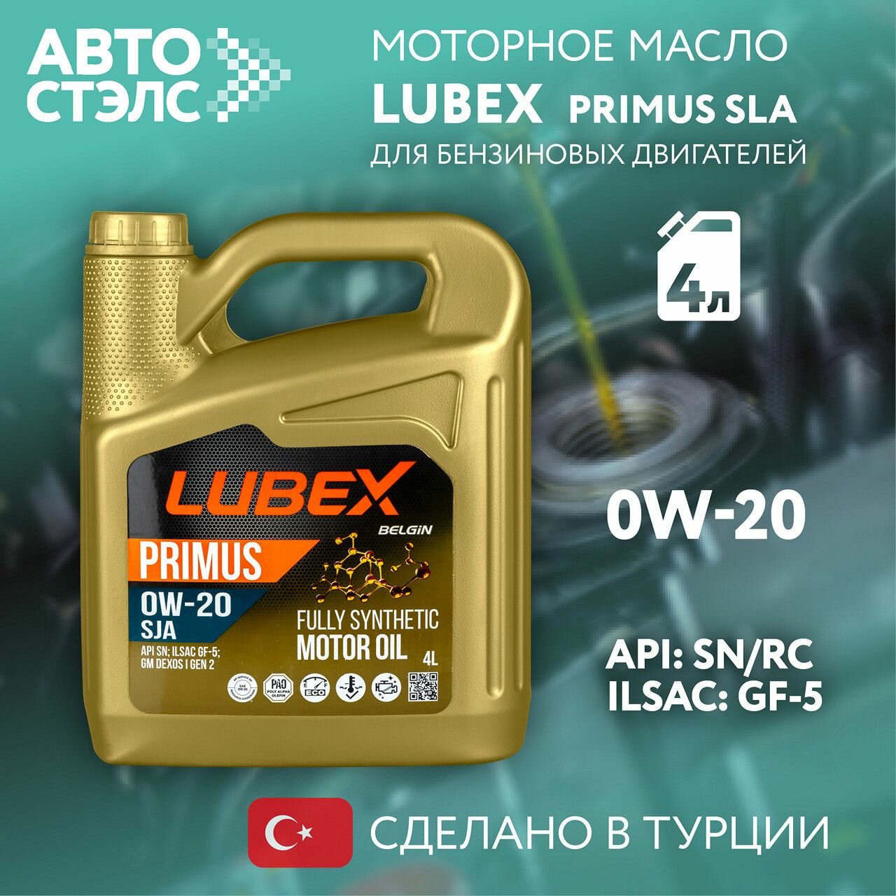 Моторное масло LUBEX PRIMUS SJA 0W-20 синтетическое 4 л