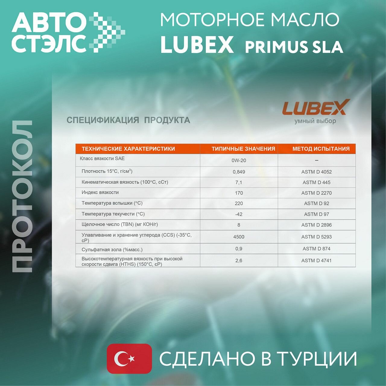 Масло моторное LUBEX PRIMUS SJA 0W-20 (4л) LUB-0W20-PSJA-4L