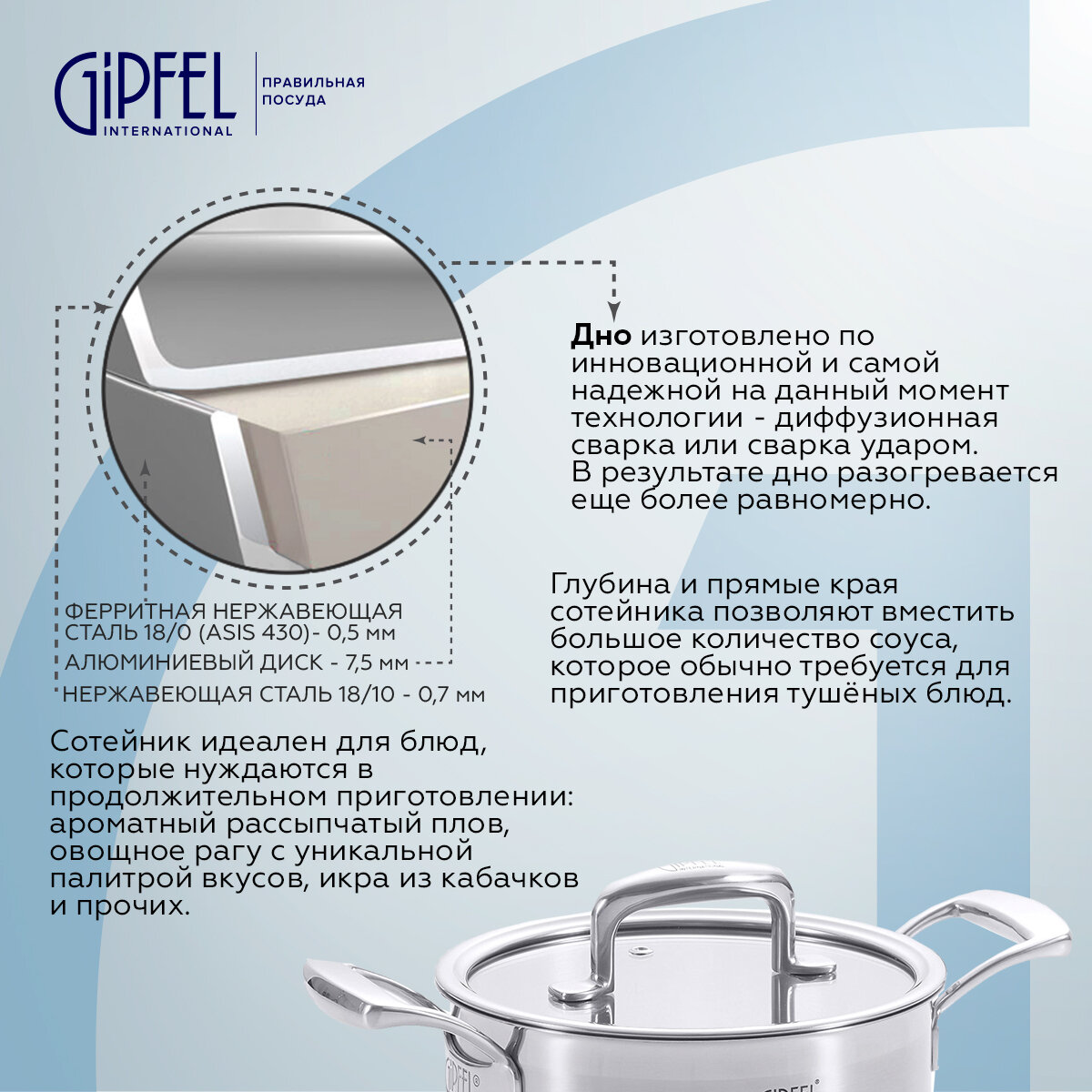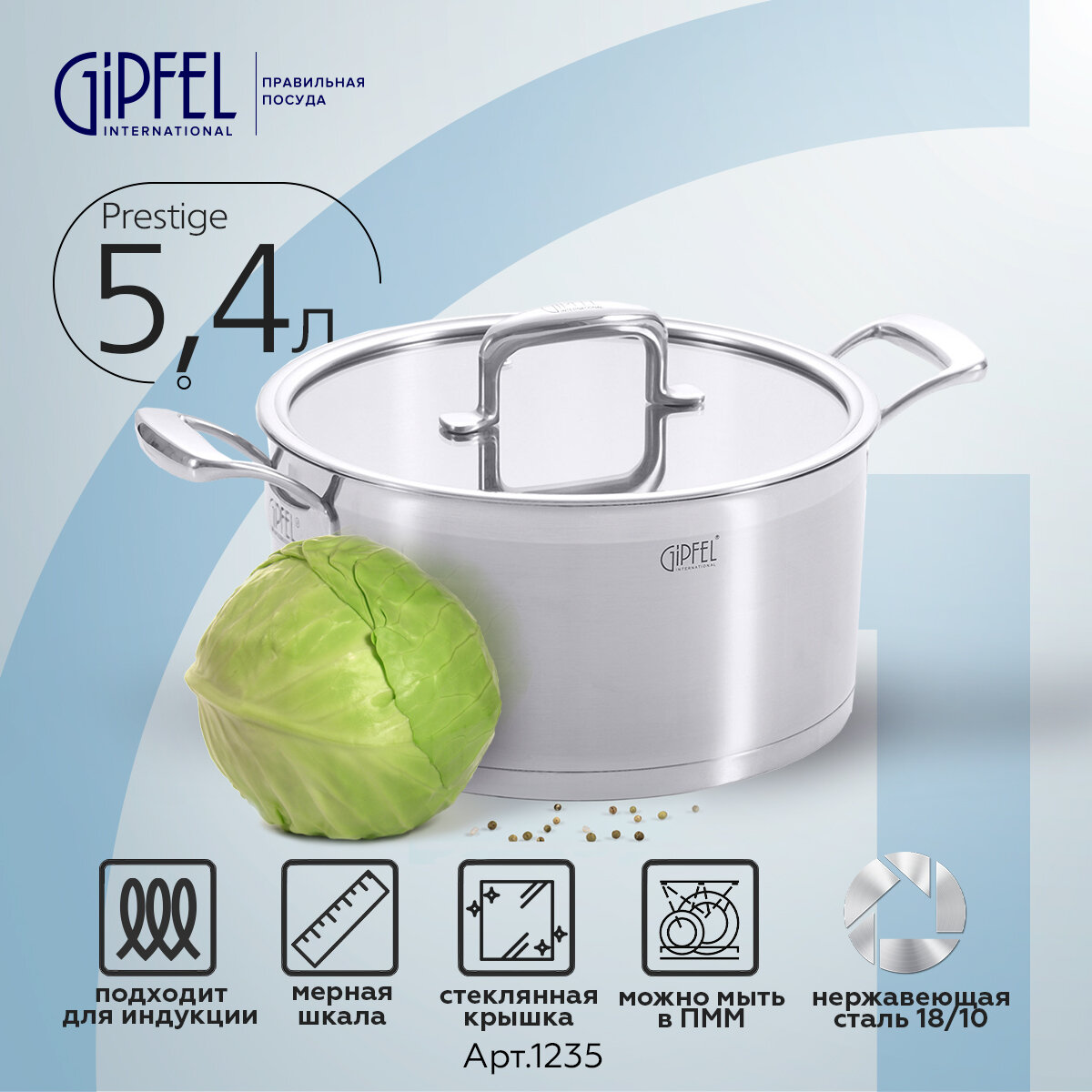 Кастрюля из нержавеющей стали Gipfel Prestige 1235 24 см/5,4 л интересное: