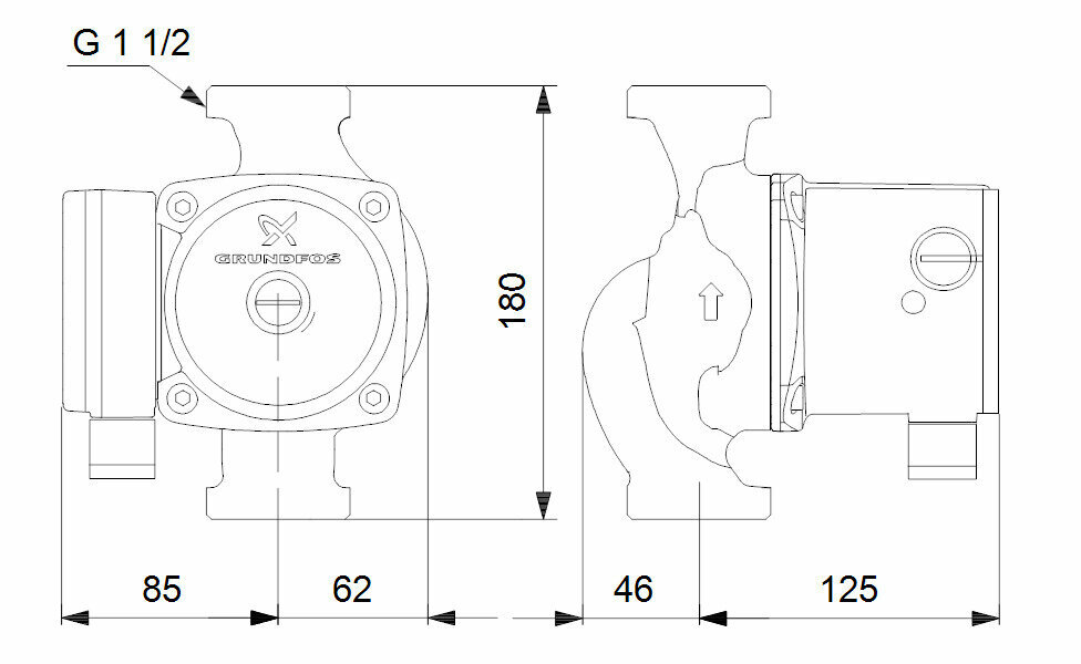 Циркуляционный насос для отопления Grundfos UPS 25-80, 180мм