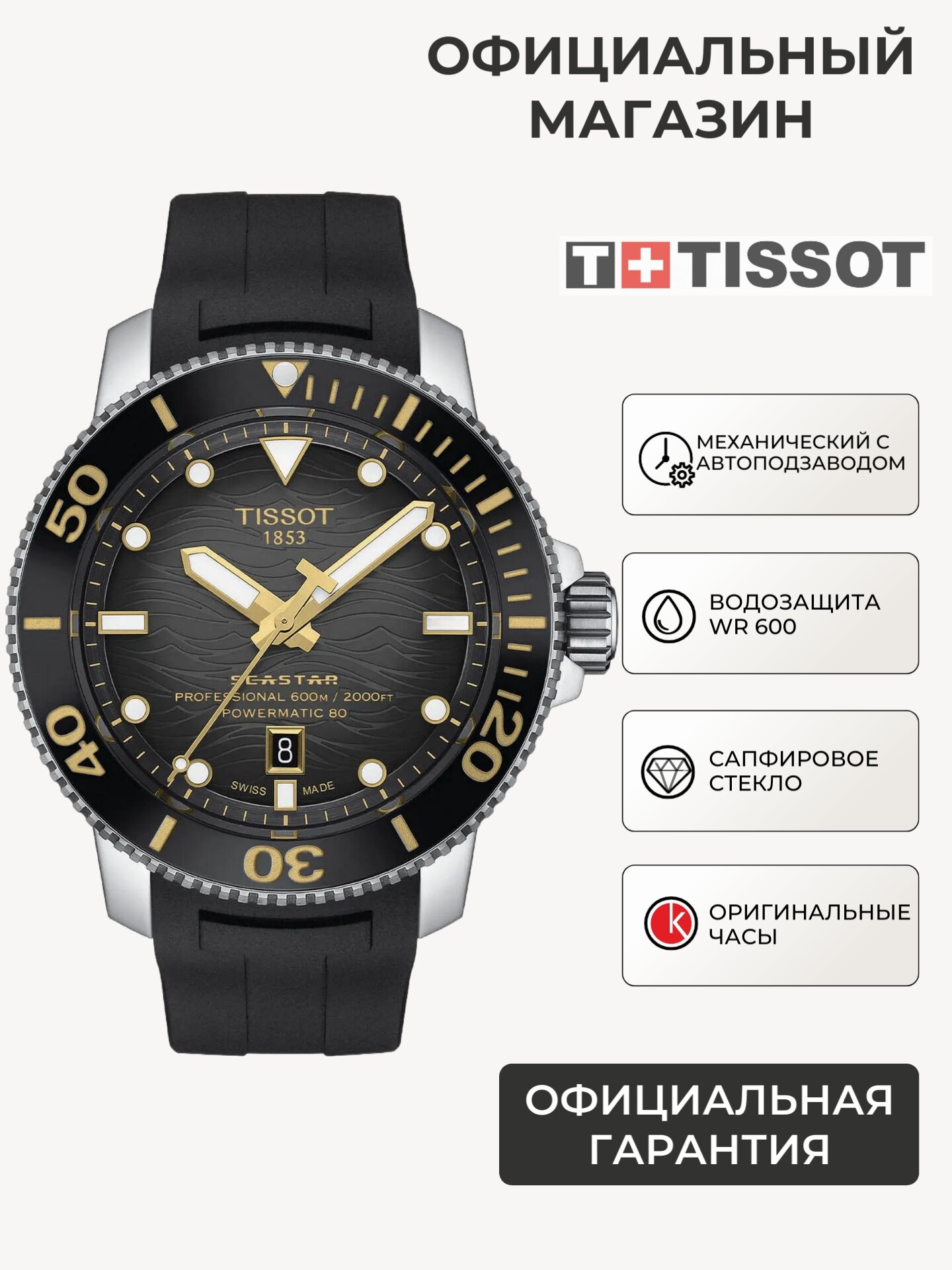 Швейцарские механические часы с автопозаводом Tissot Seastar 2000 Professional Powermatic 80 T120.607.17.441.01 на каучуковом браслете, с водозащитой 60 бар и международной гарантией от производителя
