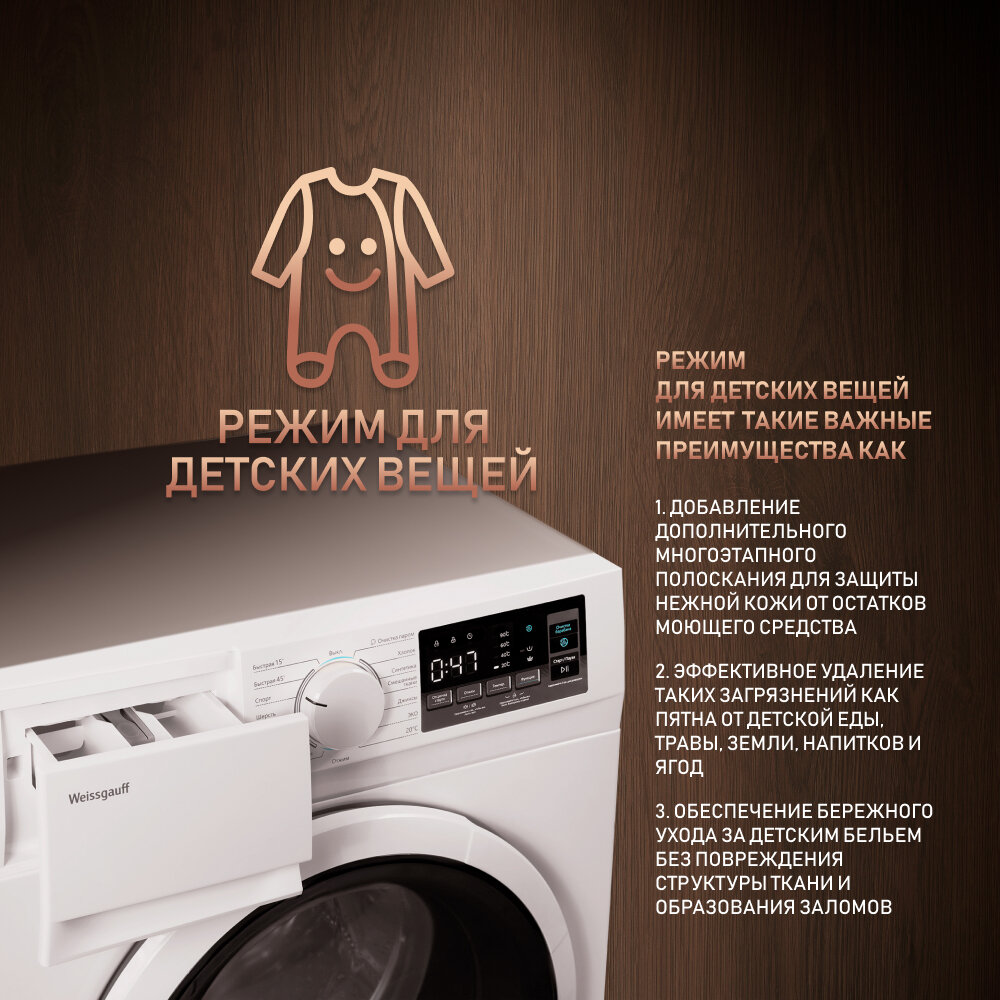 Cтиральная машина с инвертором и паром Weissgauff WM 4126 D, Защита от детей, Очистка барабана интересное: