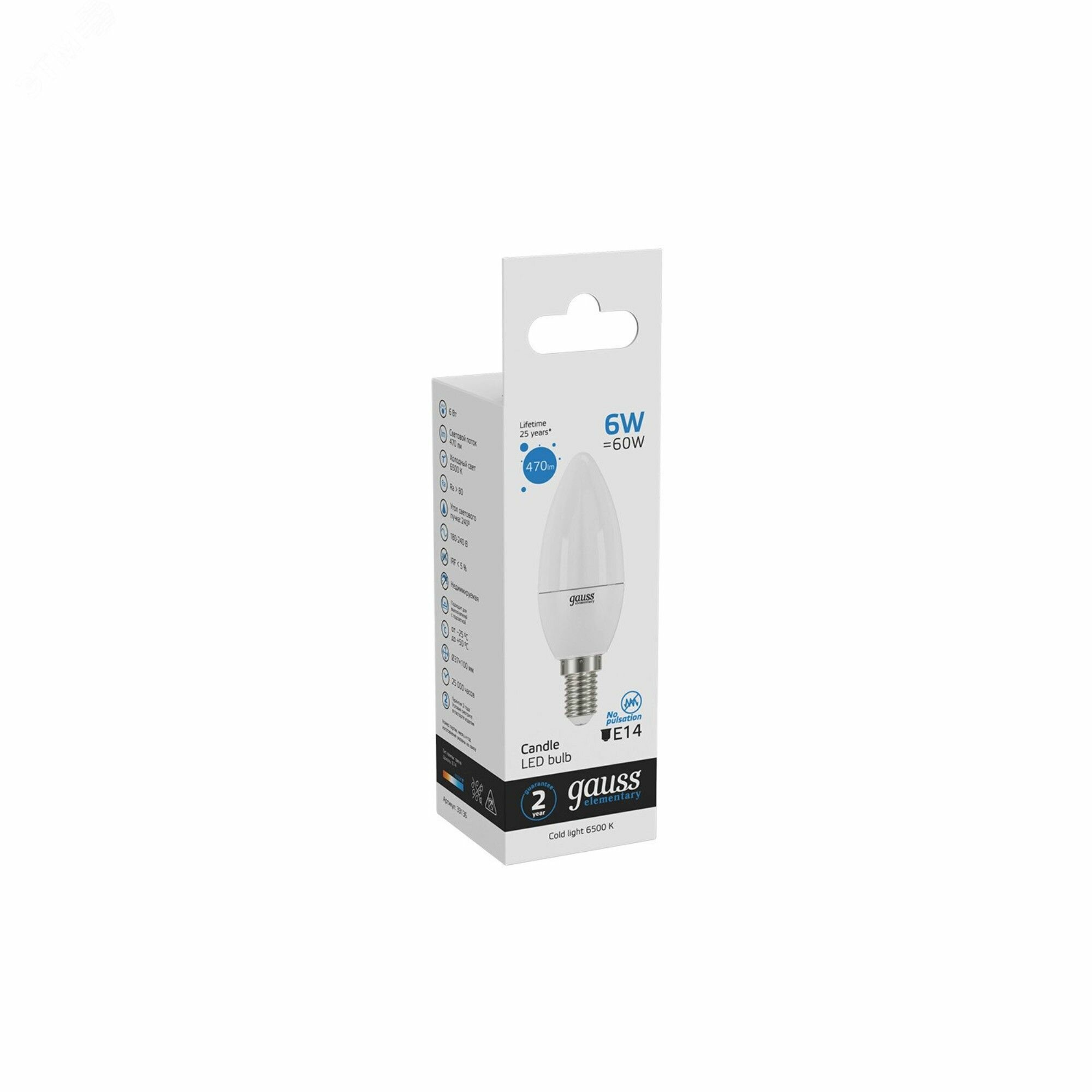Лампа светодиодная LED свеча 6W E14 470Лм 6500К 220V Elementary (Gauss), арт. 33136