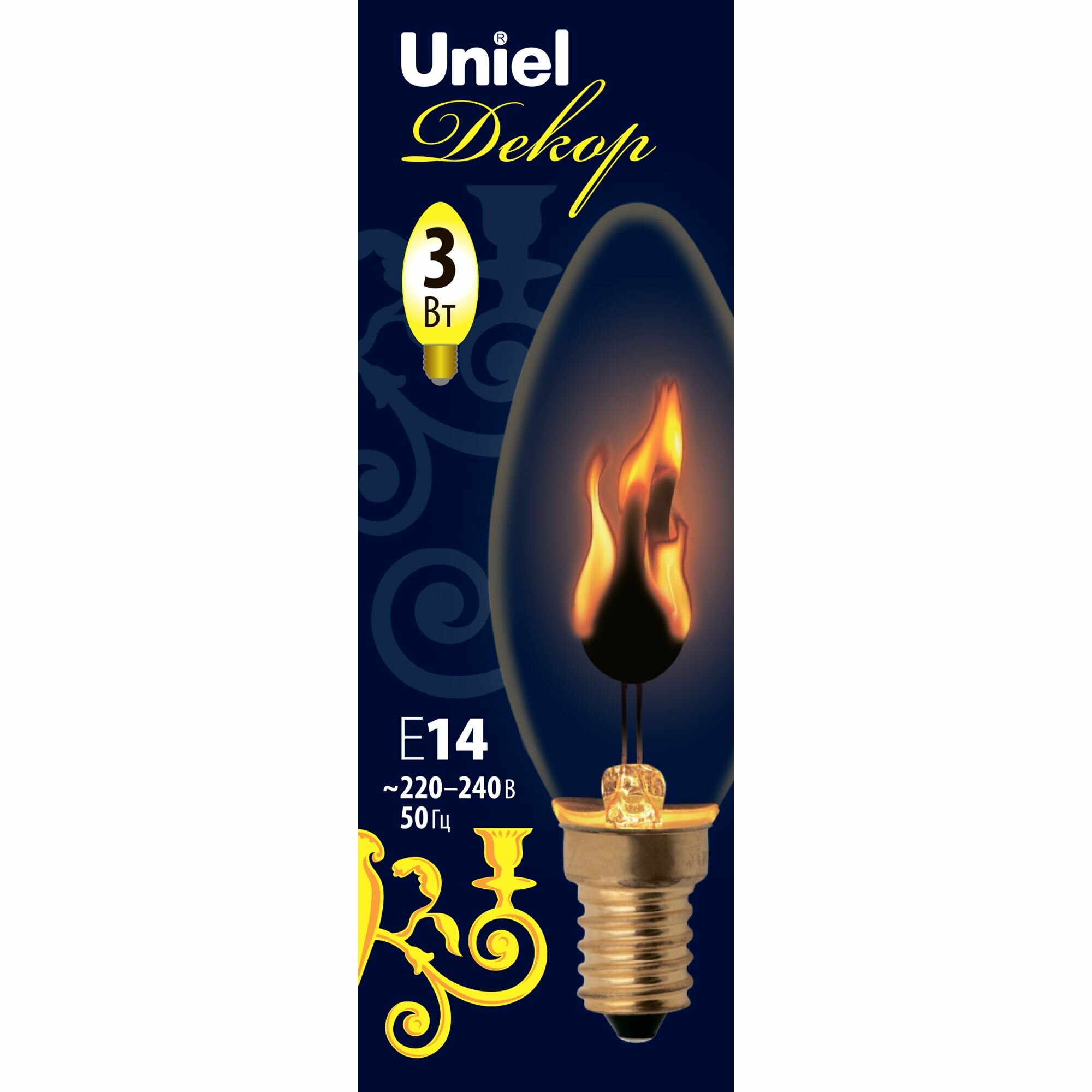 Лампа декоративная "эффект пламени" 3Вт 220В свеча Е14 UNIEL UL-00002981