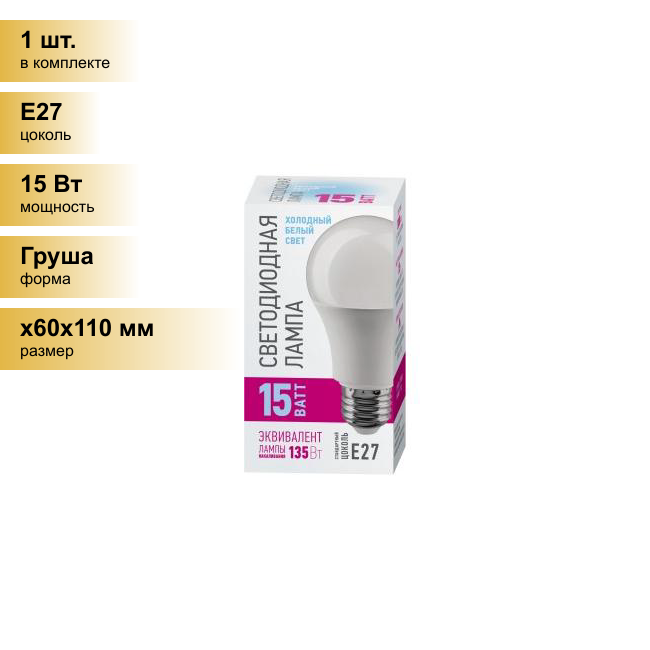 Купить 1шт/уп. Лампа LED Груша 15Вт 230B A60 E27 1350Лм 4000К Свет Нейтральный белый арт. 82921 онлайт, уп. 1шт